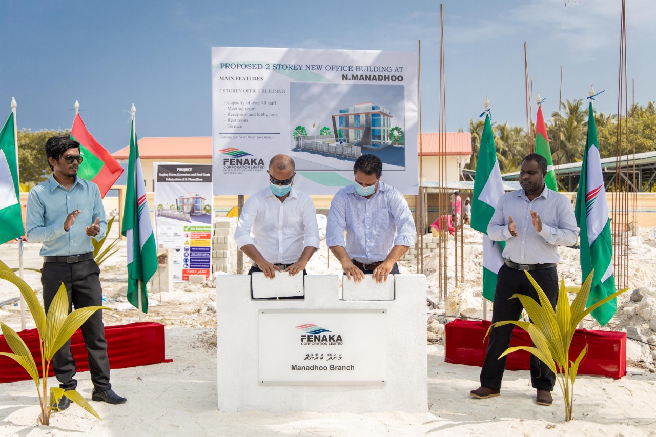 ނ. މަނަދޫގައި އަލަށް އިމާރާތްކުރާ ފެނަކަ އޮފީސް އިމާރާތުގެ ބިންގާ އަޅައިފިއެވެ.