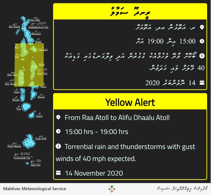 މި ދުވަސްވަރަކީ މުޅި ރާއްޖެއަށްވެސް ވިއްސާރަކޮށް މޫސުން ގޯސް ދުވަސްވަރެކެވެ. އެހެންކަމުން މެޓް އޮފީހުން އަންނަީ ރާއްޖޭގެ އެކި ސަރަހައްދުތަކަށް މޫސުމާ ބެހޭ އެލާޓް ނެރެމުންނެވެ.