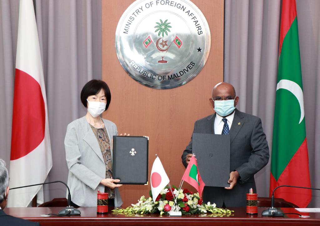 މިކަމަށްޓަކައި މިއަދު މިނިސްޓްރީ އޮފް ފޮރިން އެފެއަރޒްގައި ބޭއްވި ރަސްމިއްޔާތެއްގައި އެކްސްޗޭންޖް އޮފް ނޯޓްސްގައި ސޮއިކުރެއްދީ ދިވެހި ސަރުކާރުގެ ފަރާތުން މިނިސްޓަރ އޮފް ފޮރިން އެފެއަރޒް އަބްދުﷲ ޝާހިދުއެވެ. އަދި ޖަޕާނު ސަރުކާރުގެ ފަރާތުން ސޮއިކުރެއްވީ ޖަޕާނުން ދިވެހިރާއްޖެއަށް ކަނޑައަޅާފައި ހުންނަވާ ސަފީރު ކެއިކޯ ޔަނާއީއެވެ.