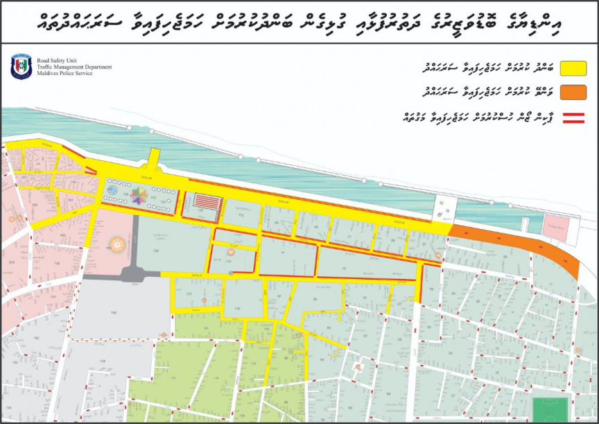 އެގޮތުން ފުލުހުންގެ ޗާޓުން ފެންނަ ރީނދޫ ބަޔަކީ ބަންދު ކުރަން ނިންމާފައިވާ ސަރަހައްދެވެ. ރަތްކުލައިން ފެންނަނީ ޕާކު ކުރުން މަނާ ސަރަހައްދުތަކެވެ. އަދި ބައެއް މަގުތައް ވަންވޭ ކުރަން ނިންމާފައިވާ ކަމަށް ވެސް ފުލުހުން ވިދާޅުވިއެވެ.