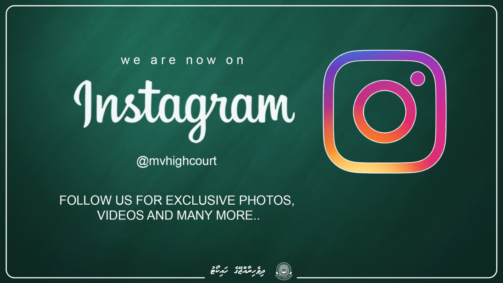 ހައިކޯޓުން ވިދާޅުވީ، ދިވެހިރާއްޖޭގެ ހައިކޯޓުގެ އިދާރީ ހިންގުމާއި ހައިކޯޓާ ބެހޭ މައުލޫމާތުތައް، ފޮޓޯ އަދި ވީޑިއޯ މެދުވެރިކޮށް ޢާންމުންނަށް ފެންނާނޭހެން ހުޅުވާލުމަށްޓަކައި އިންސްޓަގްރާމް އެކައުންޓެއް ހުޅުވުމަށް، ދިވެހިރާއްޖޭގެ ހައިކޯޓުގެ ޢާއްމު މަޖިލޫހުން ނިންމަވައިފައިވާކަމަށެވެ.