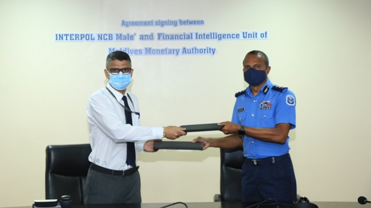 އެގޮތުން އިންޓަރޕޯލް ސެކިއުއަރ އިންފޮމޭޝަން ނެޓްވޯކްގެ އެކްސެސް މޯލްޑިވްސް މަނިޓަރީ އޮތޯރިޓީގެ ފައިނޭޝަލް އިންޓެލިޖެންސް ޔުނިޓަށް ދިނުމުގެ އެއްބަސްވުމުގައި އިންޓަރޕޯލް ނޭޝަނަލް ސެންޓްރަލް ބިއުރޯ (އެން.ސީ.ބީ) މާލެ އާއި މޯލްޑިވްސް މަނިޓަރީ އޮތޯރިޓީގެ ފައިނޭންޝަލް އިންޓެލިޖެންސް ޔުނިޓާ ދެމެދު އެއްބަސްވުމެއްގައި މިއަދުވަނީ ސޮއިކޮށްފައެވެ.