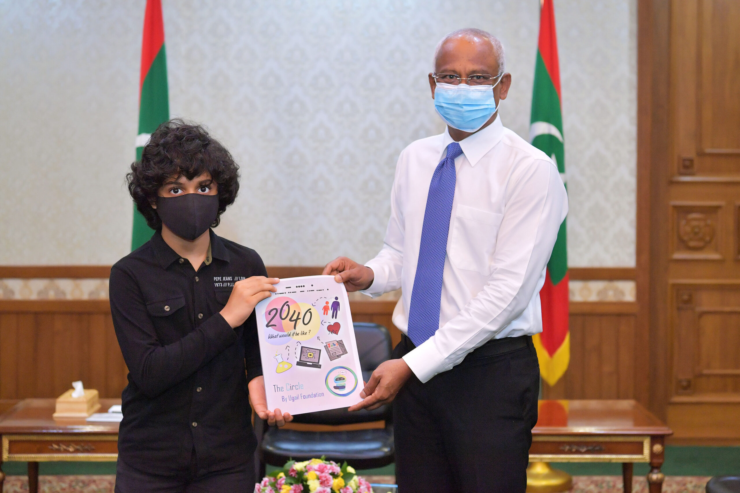 2040 ގެ ތަސައްވުރާ ގުޅޭގޮތުން ދިވެހި ކުޑަކުދިންތަކެއް ލިޔެފައިވާ ދެ ފޮތެއް ރައީސުލްޖުމްހޫރިއްޔާ އިބްރާހީމް މުޙައްމަދު ޞާލިޙަށް ހަދިޔާކުރައްވައިފިއެވެ.