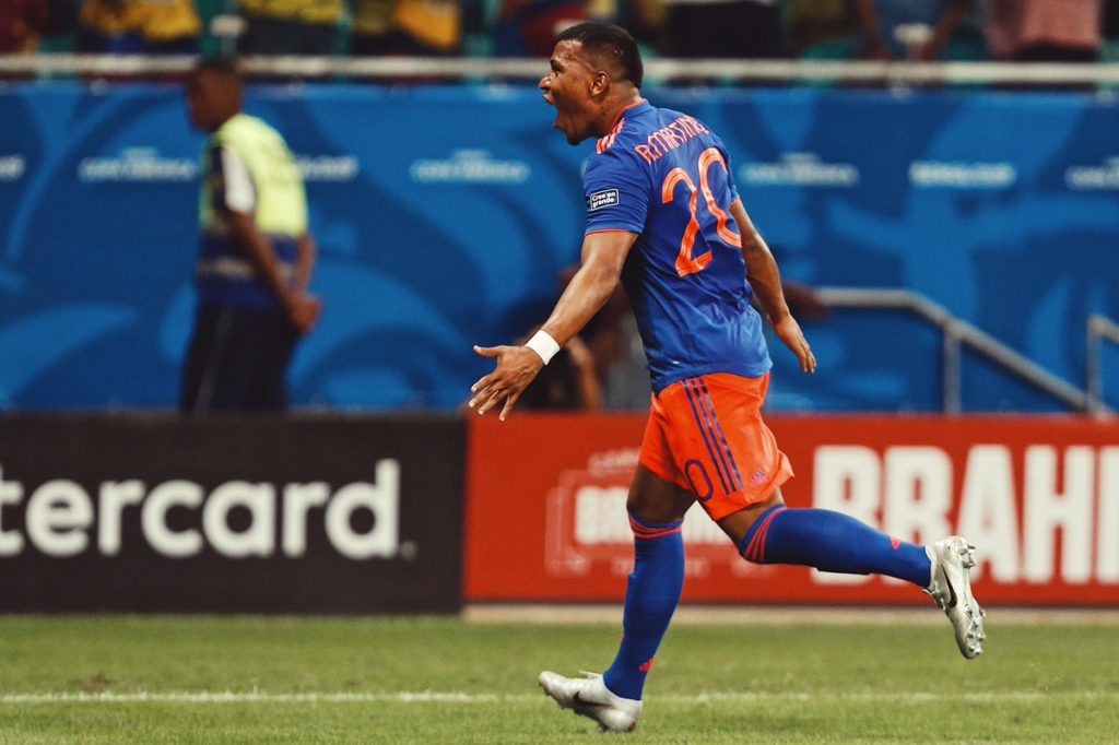 ފޯރިގައި ކުޅެމުންދިޔަ އާޖެންޓީނާ ކޮޅަށް ކޮލަމްބިއާއިން ފުރަތަމަ ލަނޑުޖެހީ މެޗުގެ 71 ވަނަ މިނަޓްގައެވެ. މެދުތެރެއިން ރޮޑްރިގޭޒް އަރިމައްޗަށް އެއްލި ބޯޅަ ރޯޖާ މާޓިނޭޒް ގޯލް ތެރެއަށް ފޮނުވާލީ ޕެނަލްޓީ އޭރިއާ ރޮނގުމަތިން ކަހަލަ ގޮތަކަށެވެ.