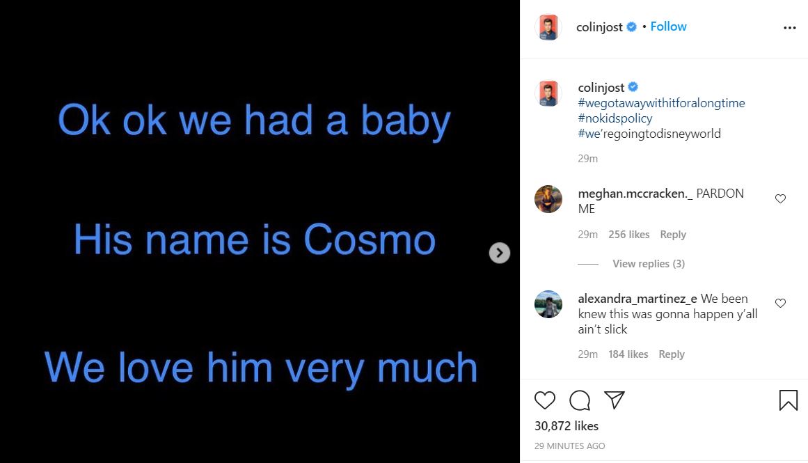 ނަމަވެސް މިދިޔަ އާދިއްތަ ދުވަހު ކޮލިން ޖޯސްޓް ވަނީ ބައްޕަ އަކަށް ވާން އުޅޭކަން ކަށަވަރުކޮށްދީފައެވެ. އަދި އެކަން ކަށަވަރުކޮށްދީ، މީޑިއާގައި ހަބަރު ފެތުރިފައި ވަނިކޮށް، ކޮލިން ދެންމެއަކު ވަނީ އޭނަގެ އިންސްޓަގްރަމް މެދުވެރިކޮށް އޭނަގެ އަލަތު ދަރިފުޅު ވިހައިފައިވާކަން ކަށަވަރުކޮށްދީފައެވެ.
