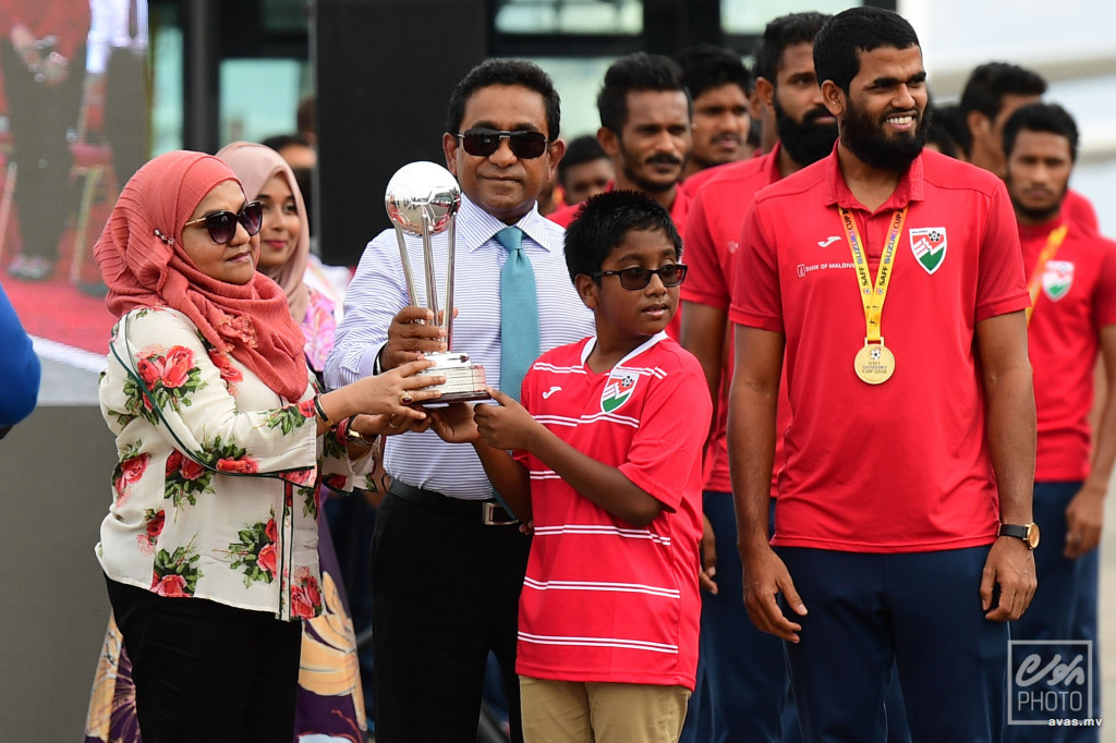 އަދި ދިވެހި ޤައުމީ ފުޓުބޯޅަ ޓީމުން ހޯދާ ކޮންމެ ކާމިޔާބީއަކީ ފަރުދީ ގޮތުން ތިމާގެވެސް ބައިވެރިވުމާއެކު ލިބިގެން ދާ ކާމިޔާބީއަކަށް ހެދުމަށްޓަކައި އެންމެހައި ރައްޔިތުން ގުޅިގެން ރާއްޖޭގެ ހުރިހާ ހިސާބަކުންވެސް ޤައުމީ ޖޯޝާއެކު ޓީމަށް ހިތްވަރު ދިނުމަށް އެމަނިކުފާނު ވަރަށް ބޮޑަށް އެދިވަޑައިގަންނަވާ ކަމަށް ބަޔާނުގައިވެއެވެ.