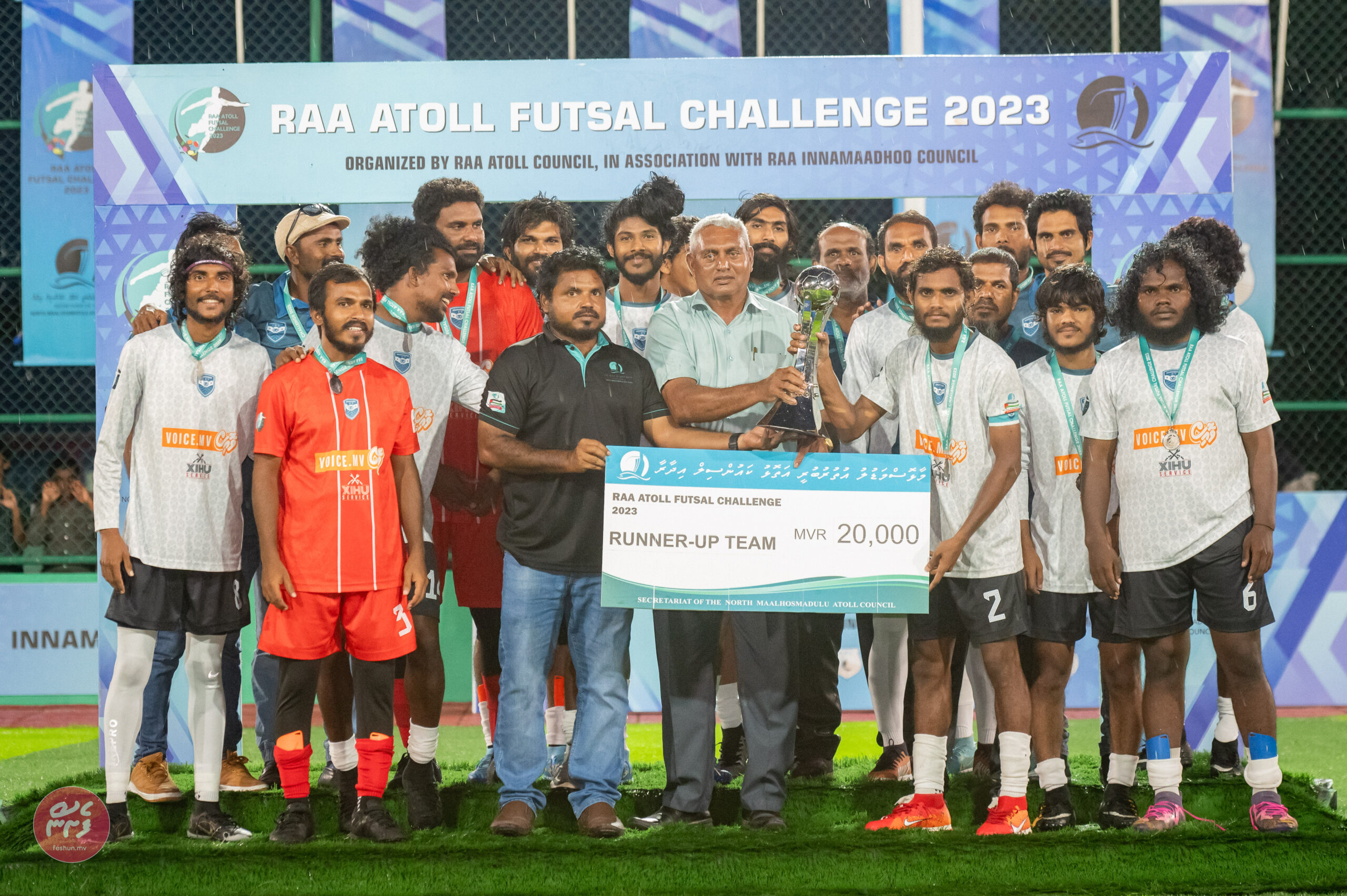ވޭތުވެދިޔަ އަހަރުގެ ރ. އަތޮޅު ފުޓްސަލް މުބާރާތުގެ ތަށި ދުވާފަރުން ނަގާފައިވަނީ އުނގޫފާރުގައި އިނގުރައިދޫއާއި ދެކޮޅަށް ކުޅެ އެ ޓީމު ބަލިކޮށްގެނެވެ. ނޮޅިވަރަމް ދާއިރާގެ މަޖިލިސް މެންބަރު މުޙައްމަދު ނަޝީދު ޢަބްދުﷲ ޝަރަފުވެރިކޮށްދެއްވި، މި މުބާރާތުގެ ޗެމްޕިއަން ޓީމް ދުވާފަރަށް 30،000ރ ގެ ފައިސާގެ އިނާމް އަދި ރަނަރ-އަޕް ޓީމް އިނގުރައިދޫއަށް 20،000ރ ގެ ފައިސާގެ އިނާމު ދީފައިވާއިރު، ރ. އަތޮޅު ފުޓްސަލް ޗެލެންޖުގެ ފައިނަލް މިއަދު ކުޅެފައިވަނީ މޫސުން ތަންނުދިނުމުގެ ސަބަބުން އިއްޔެ މެޗު ނުކުޅެވުމުންނެވެ.