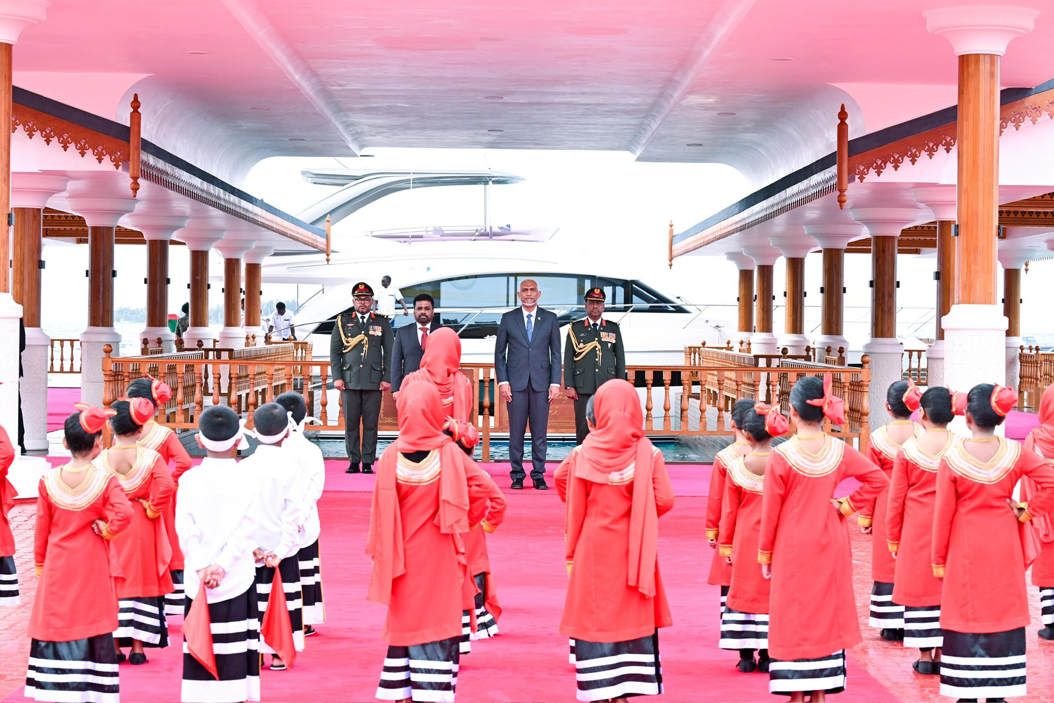 ރައީސުލްޖުމްހޫރިއްޔާ ޑރ. މުޙައްމަދު މުޢިއްޒުގެ ދަޢުވަތަކަށް އަވަށްޓެރި ސްރީލަންކާގެ ރައީސް އަނުރަ ކުމާރަ ދިސާނަޔަކަ ރާއްޖެއަށް ކުރައްވާ ފުރަމާނަ ދަތުރުފުޅުގައި މިއަދު ހަވީރު މާލެއަށް ވަޑައިގެންނެވުމުން ރަސްމީކޮށް މަރުޙަބާ ދަންނަވައިފިއެވެ.