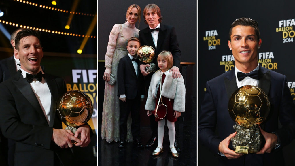 ރޮނާލްޑޯ، މޮޑްރިޗް އަދި މެސީ ބެލެންޑޯ އެވޯޑާއެކު - ފޮޓޯ: ފޮކްސް ސްޕޯޓްސް އޭސިއާ