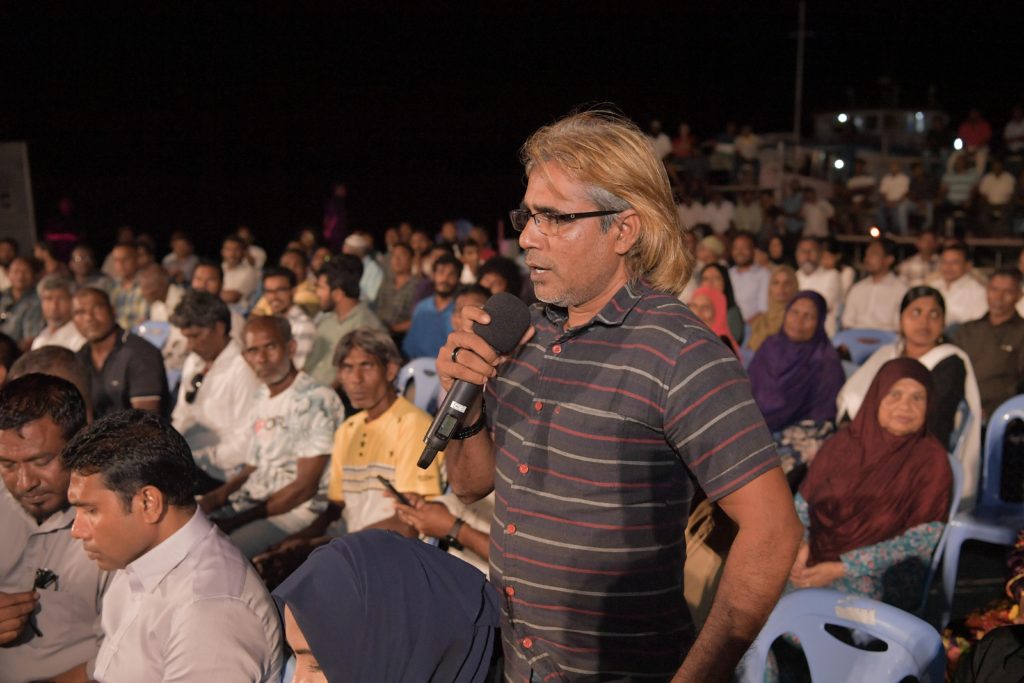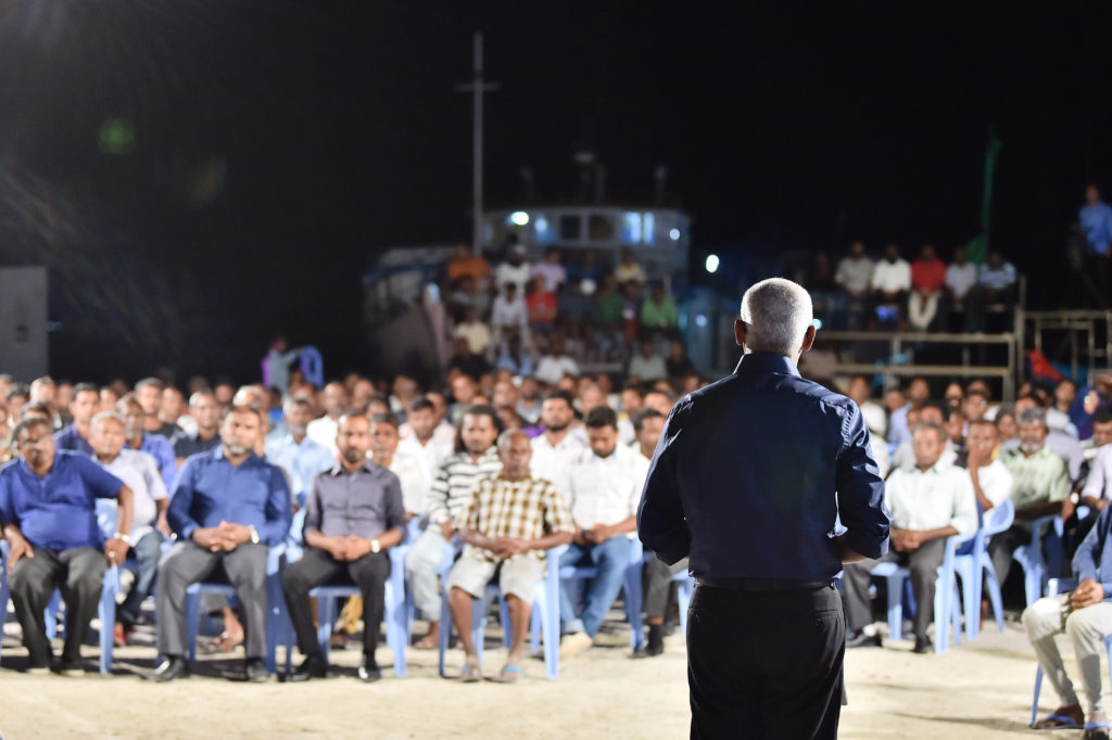 މަސްވެރިންގެ ފަރާތުން އަމާޒުކުރެއްވި ބައެއް ސުވާލުތަކަށް ޖަވާބުދެއްވާ ވާހަކަފުޅު ދައްކަވަމުން ރައީސުލްޖުމްހޫރިއްޔާ ވިދާޅުވީ ސަރުކާރުން މިދާއިރާގެ ކަންކަން ކުރައްވަމުން ގެންދަވާނީ މަސްވެރިންގެ ޚިޔާލާއި މަޝްވަރާ ހޯއްދަވައިގެންކަމަށެވެ. އެގޮތުން ދާދިފަހުން ވެސް ޓޫރިޒަމްގެ ބޭނުމަށް ދޫކުރަން ހަމަޖެހިފައި އޮތް ރަށެއް އެކަމަށް ދޫ ނުކޮށް އެންވެރިކަމާއި މަސްވެރިކަމަށް ބޭނުންހިފޭގޮތަށް ބާއްވާފައިވާކަން ރައީސް ފާހަގަކުރެއްވިއެވެ. ހަމަ އެހެންމެ ތިނަދޫ އައިސްޕްލާންޓް ކެޕޭސިޓީ އިތުރުކުރުން ކުރިޔަށްގެންދަވާނެކަމަށާއި އައިސްޕްލާންޓް ޖެޓީ މަރާމާތުކުރުމުގެ މަސައްކަތް ވަރަށް އަވަހަށް ބަޔަކާ ހަވާލުކުރެވޭނެކަމަށް ވިދާޅުވިއެވެ. ރާއްޖެ ސަރަހައްދުތަކަކަށް ބަހާލައިގެން މަސްގަނެވޭނެ ގޮތްތައް ހަމަޖައްސަވާނެކަމަށާއި ހުވަދުއަތޮޅު ސަރަހައްދުގައި އިންޓަރނޭޝަނަލް އެއާޕޯޓެއް ތަރައްޤީކުރުމަށް ޕްލޭންކުރެވިފައިވާކަމަށާއި އޭގޭ ސަބަބުން ކަންނެލި އެކްސްޕޯޓްކުރުންފަދަ ކަންކަމަށް ލުއިފަސޭހަކަން ލިބި އެފަދަ އުފެއްދުންތަކަށް ބޮޑުއަގު ލިބުމުގެ ފުރުޞަތު ތަނަވަސްވެގެންދާނެކަން ރައީސްގެ ވާހަކަފުޅުގައި ފާހަގަކުރެއްވިއެވެ.