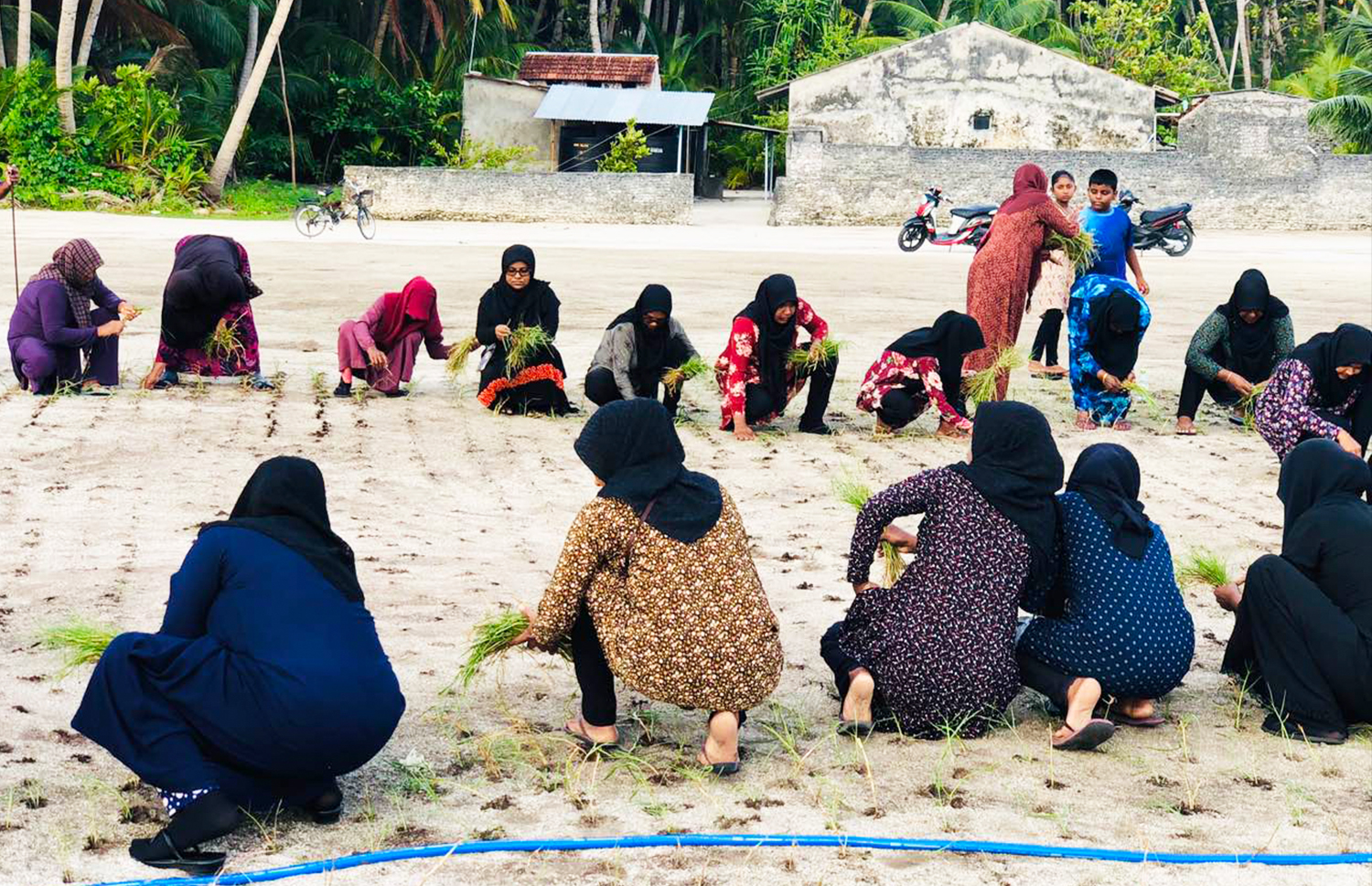 މީސްމީޑިއާއަށް ދޫކޮށްލާފައިވާ ހިތްގައިމު ފޮޓޯތަކެކެވެ. ފޮޓޯތަކުން ފެންނަނީ ބޮޑު ހުސްބިމެއްގައި އަންހެން ފިރިހެން ކުދި ބޮޑު އެތަށް ބަޔަކު ކުދި ގަސްތަކެއް އިންދަމުންދާ މަންޒަރެވެ. ބިންބި ދަނޑެއްގައި ބިންބި ގަސް ރުވަނީކަމަށް ހިތައި ފޮޓޯ އިތުރަށް ޒޫމްކޮށްލެވުނެވެ.
