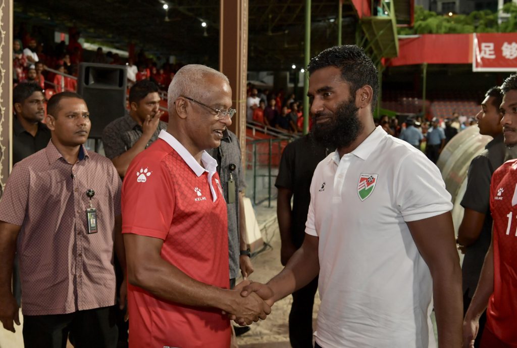 މިމެޗުގެ ތެރޭގައި ރައީސުލްޖުމްހޫރިއްޔާ ވަނީ ދިވެހި ޤައުމީ ޓީމުގެ އައު ޖާޒީ ރަސްމީކޮށް އިފްތިތާހް ކޮށްދެއްވާފައެވެ.
