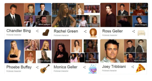 ގޫގަލްއިން މިވަނީ، "ފްރެންޑްސް"ގެ ފޭނުންނަށް ހަނދާނުން ފިލުވާލަން ދަތި ސީރީޒްގެ ކެރެކްޓާތައް ކަމުގައިވާ "ރޭޗަލް"، "މޮނިކާ"، "ފީބީ"، "ޖޯއީ"، "ޗޭންދްލާ"، އަދި "ރޮސް" އަށް ހާއްސަ ޓްރިބުއުޓެއް ދީފައެވެ. އެގޮތުން، ގޫގަލްގައި "ފްރެންޑްސް" މި ބަހާއެކު މި ކެރެކްޓާތަކުގެ ނަން ޖެހުމަށްފަހު ސާޗް ކުރުމުން އަންނަނީ އެ ކެރެކްޓާއަކާއި އެންމެ ގުޅޭ ލައިނެއްގެ ނުވަތަ ކަމެއްގެ ފޮޓޯއެކެވެ. އަދި މި ފޮޓޯއަށް ކްލިކް ކޮށްލުމުން ކޮންމެ މީހެއްގެ މޫނުމަތިންވެސް ހިނިތުވުން ފާޅުވާނެކަން ގައިމެވެ.
