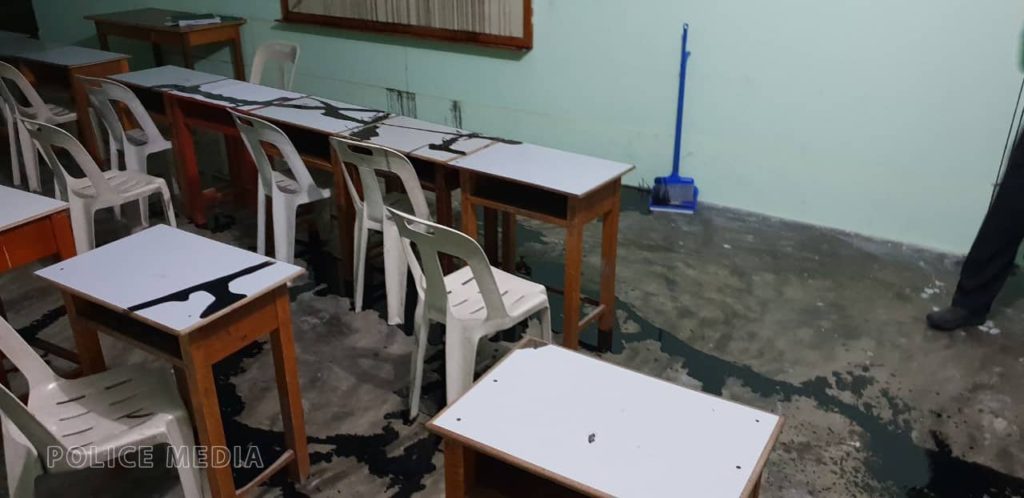 ނޮޅިވަރަމް ސްކޫލުގެ ޕްރިންސިޕަލާއި ހަވާލާދީ “ތިލަދުން” ނޫހުން ބުނެފައިވަނީ އެރަށު ސްކޫލްއަށް ރޭ ދަންވަރުގެ ވަގުތެއްގައި ކަޅުތެޔޮ ޖަހާފައިވާކަމަށާއި ގޮނޑިތަކަށާއި ޑެސްކް ތަކަށް ކަޅު ތެޔޮ ބުރާފައިވާކަމަށާއި މިހާރު އެމައްސަލަ ފުލުހުންނަށް ހުށައަޅާފައިވާކަމަށެވެ.