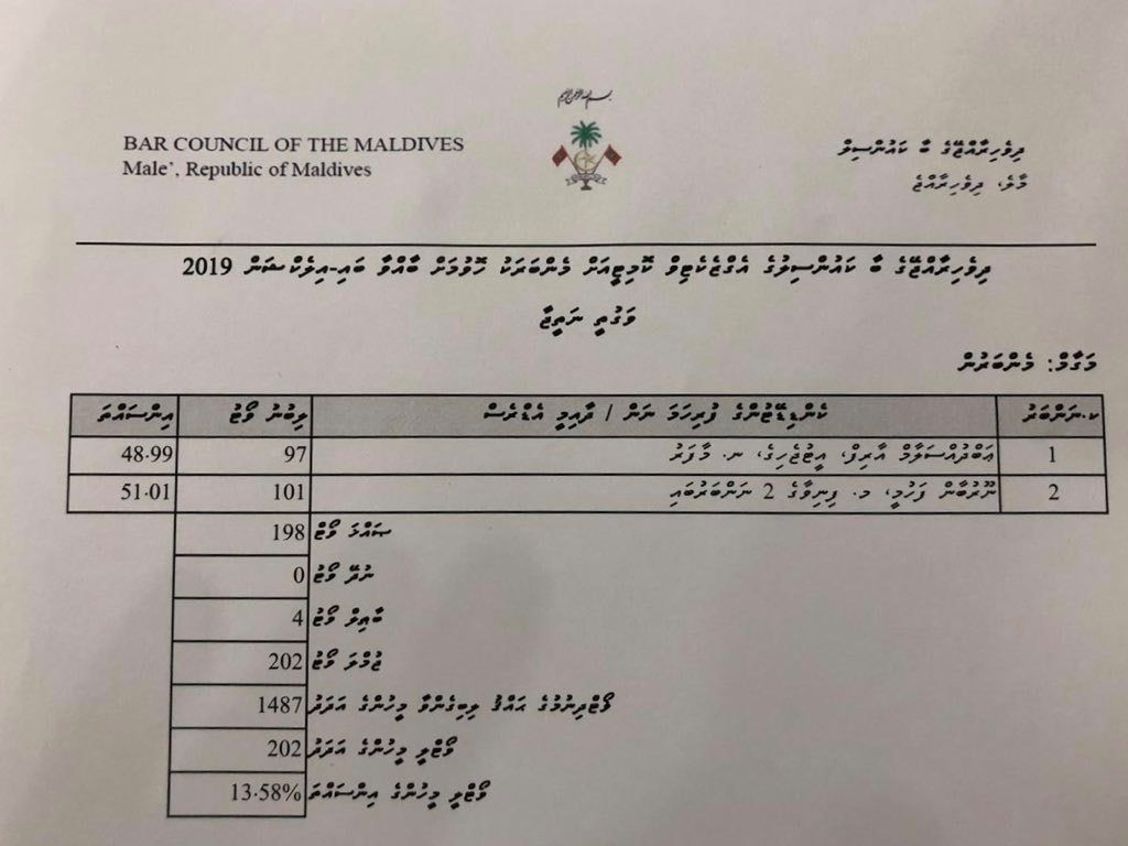 ސުޕްރީމް ކޯޓުގެ ފަނޑިޔާރުކަމަށް އައްޔަން ކުރި އައިޝަތު ޝުޖޫން، ބާ ކައުންސިލްގެ މެމްބަރުކަމުން އިސްތިއުފާ ދެއްވުމާ ގުޅިގެން މިއަދު ބޭއްވި ބައި-އިލެކްޝަން ނޫރުބާން ފަހުމީ ކާމިޔާބުކުރީ ހަތަރު ވޯޓުގެ ތަފާތަކުންނެވެ.