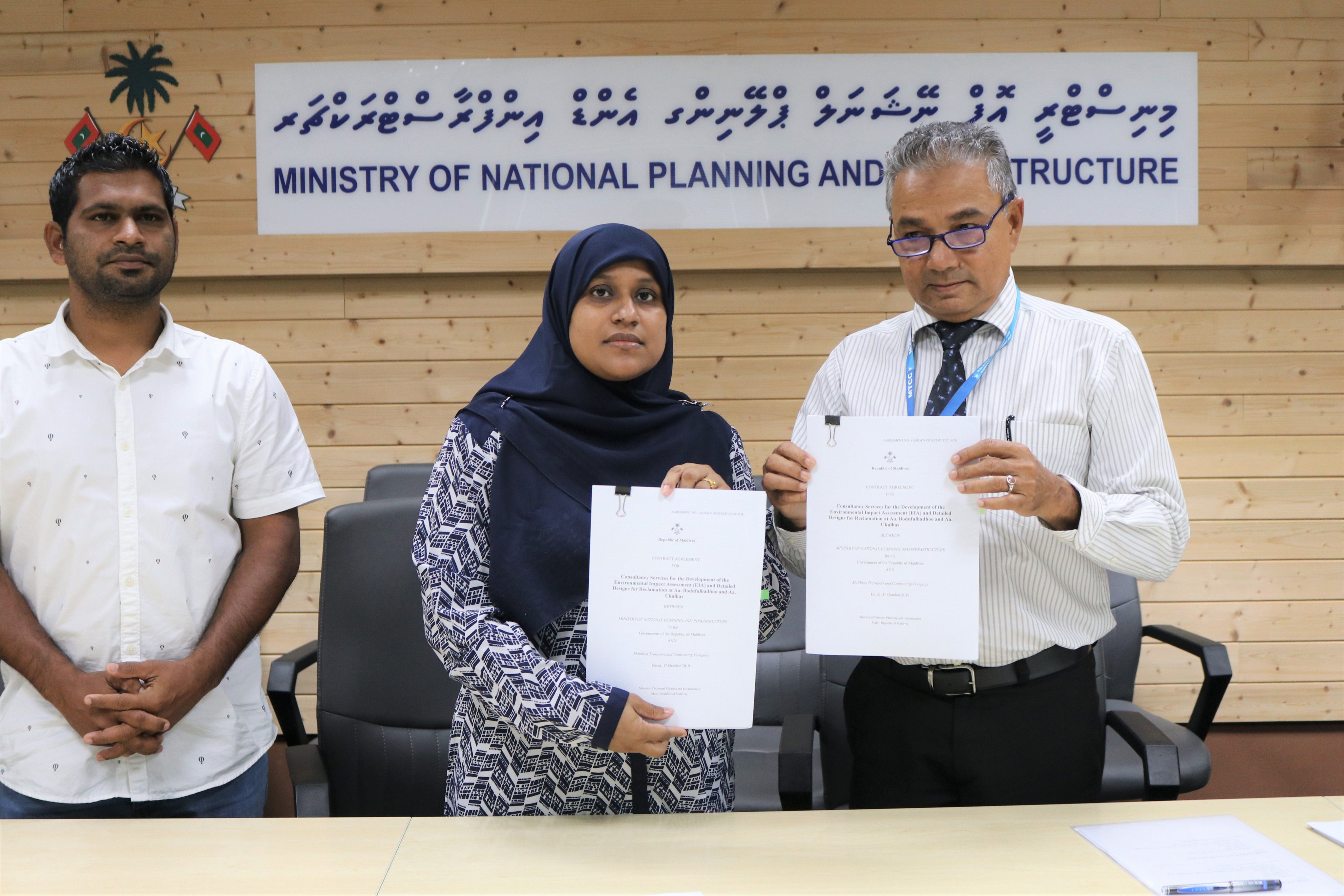 މި އެއްބަސްވުުންތަކުގައި ޕްލޭނިން މިނިސްޓްރީގެ ފަރާތުން ސޮއިކުރެއްވީ ޕްލޭނިންގ މިނިސްޓްރީގެ ފަރާތުން ސޮއިކޮށްފައިވަނީ ޕަރމަނެންޓް ސެކްރެޓަރީ ޒީނިޔާ އަޙްމަދު ހަމީދެވެ. އަދި އެމްޓީސީސީގެ ފަރާތުން ސޮއިކުރެއްވީ އެ ކުންފުނީގެ ސީއޯއޯ ޝާހިދު ހުސައިން މޫސާއެވެ.