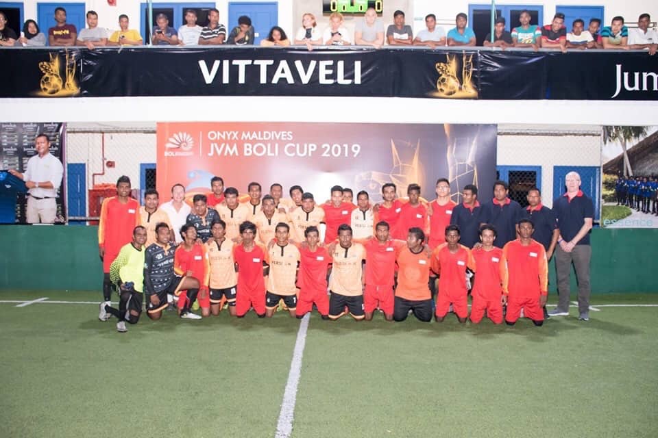 "ޖޭވީއެމް ބޮލި ކަޕް 2019" ގެ ނަމުގައި ކުރިއަށްދާ މިމުބާރާތް ފެށިފައިވަނީ މިމަހުގެ 13 ވަނަ ދުވަހުއެވެ. ޖުމެއިރާ ވިޓަވެލީގައި މުބާރާތް ހުޅުވުމުގެ ރަސްމިއްޔާތު ކުލަގަދަކޮށް ފާހަގަކޮށްފައިވާއިރު، މިރަސްމިއްޔާތުގައި ޝަރަފުވެރި މެޙެމާނެއްގެ ގޮތުން ބައިވެރިވަޑައިގެންފައިވަނީ މޯލްޑިވްސް ސްޕޯރޓްސް ކޯޕަރޭޝަންގެ މެނޭޖިން ޑިރެކްޓަރު މަޢުރޫފް އަޙްމަދު (މާއްޓޭ) އާއި ޖުމެއިރާގެ ޖެނެރަލް މެނޭޖަރު އަބީޖީތު ގޯޝްވަނީ ބައިވެރިވެ ވަޑައިގެންފައެވެ.