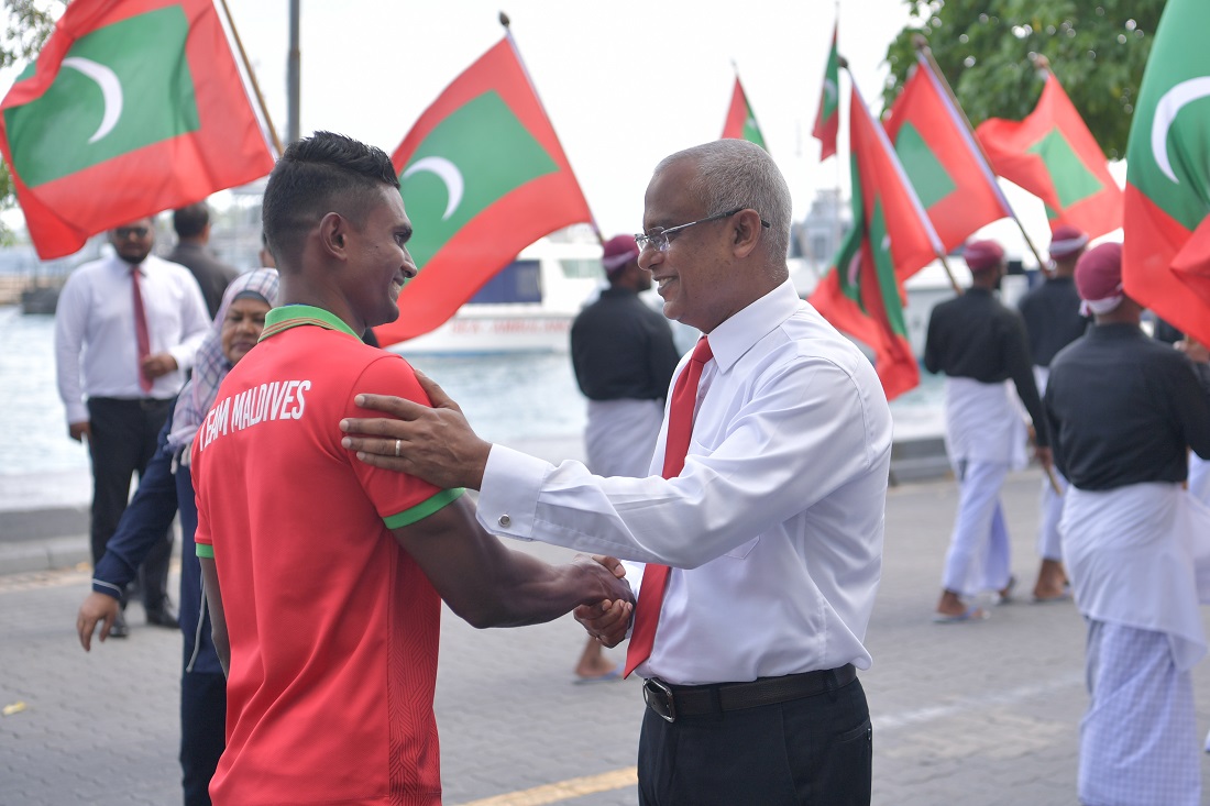 މި ބައްދަލުކުރެއްވުމުގައި ވާހަކަފުޅުދައްކަވަމުން ރައީސުލްޖުމްހޫރިއްޔާ ވަނީ މިއަދަކީ ރާއްޖޭގެ ކުޅިވަރު ތާރީޚުގައިވެސް އައި ފާހަގަކޮށްލެވޭ ފަޚުރުވެރި އުފާވެރި ދުވަހެއްކަމުގައި ވިދާޅުވެ، މިއީ ދިވެހި އެތުލީޓަކު ސައުތު އޭޝިޔަން ގޭމްސް މުބާރަތެއްގައި ރަން މެޑަލެއް ހޯދި ފުރަތަމަ ފަހަރުކަން ފާހަގަކުރައްވާފައެވެ.