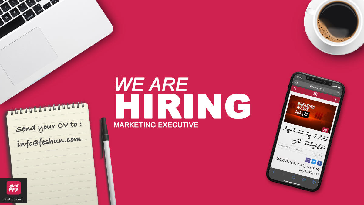 "ފެށުން" ގެ މާކެޓިންގ އެގްޒެކެޓިވްގެ މަޤާމަށް ޝައުޤުވެރިވެލައްވާ، ޝަރުތު ހަމަވާ ފަރާތްތަކުން 2019 ޑިސެމްބަރ 31 ވާ އަންގާރަ ދުވަހުގެ މެންދުރުފަހު 13:00 ގެ ކުރިން، މަޤާމާ ގުޅުންހުރި ތަޢުލީމާއި ތަޖުރިބާ ދަލީކުކޮށްދޭ ލިޔުންތައް [email protected] އަށް އީމެއިލް ކުރެއްވުމަށް ނޫހުގެ މެނޭޖްމަންޓުން އެދިލައްވައެވެ.