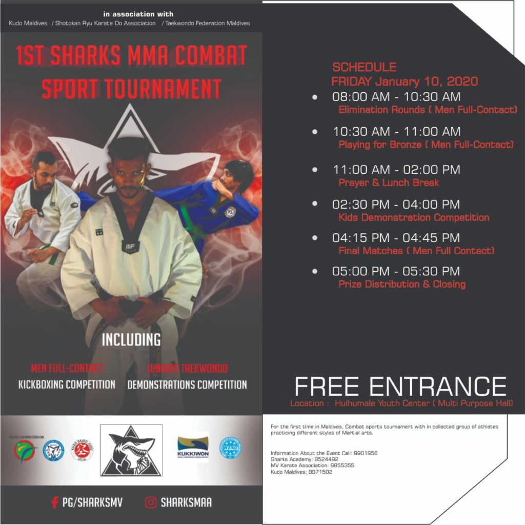 'ފަޝްޓް ޝާކްސް އެމްއޭއޭ ކޮމްބެޓް ސްޕޯޓްސް ޓާނަމަންޓް' ގެނަމުގައި ކުރިއަށް ގެންދޫ މިމުބާރާތް ކުރިއަށްދާނީ ހުޅުމާލޭ ސްޕޯޓްސް ކޮމްޕްލެކްސް ހޯލްގައެވެ. ޝާކްސް މާޝިއަލް އާޓްސް އެކަޑަމީއިން މިމުބާރާތުގެ މެއިން ސްޕޮންސަރކޮށްފައިވާއިރު، މުބާރާތުގެ ޓެކްނިކަލް އޮގަނައިޒަރއަކީވެސް އެއީއެވެ. އަދި މުބާރާތަށް ބޭނުންވާ ރެފްރީންވެސް ތަމްރީންކޮށްދީފައިވަނީވެސް ހަމަ ޝާކްސް މާޝިއަލް އާޓްސް އެކަޑަމީއިންނެވެ.
