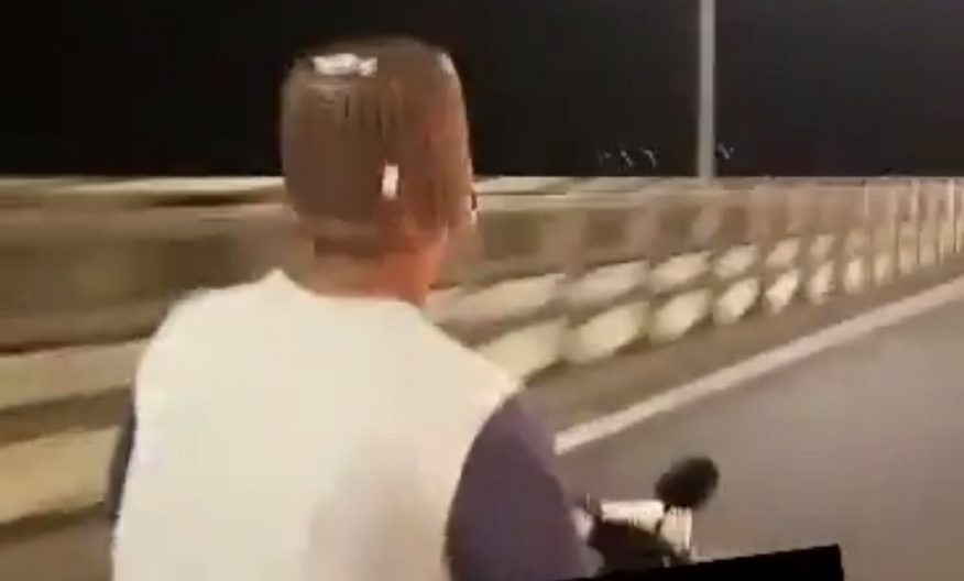 ޑަސްޓްބިނެއް ބޮލުގައި އަޅައިގެން ސިނަމާލެ ބުރިޖު މަތިން މާލެ އިން ހުޅުމާލެއަށް ދަތުރުކުރަމުންދިޔަ ދިޔަ މީހެއްގެ ވީޑިއޯ އާއްމުވެއްޖެއެވެ.
