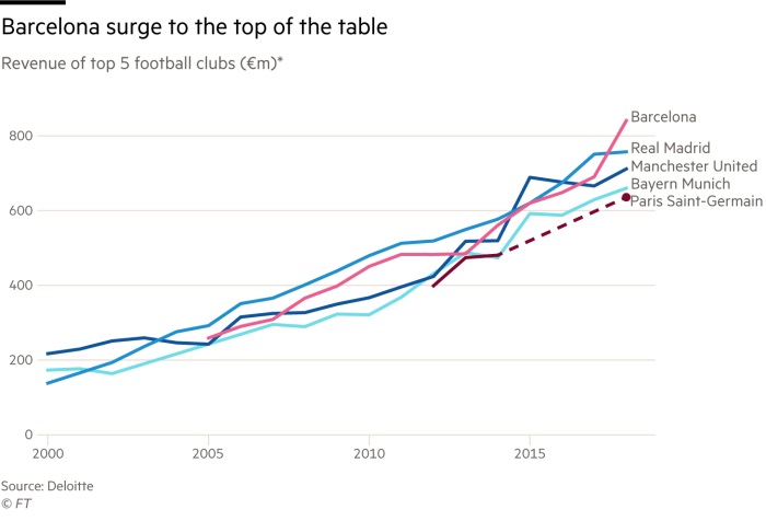 2018 ވަނަ އަހަރު ބާސެލޯނާއިން ބާސާ ލައިސެންސިންގ އެންޑް މާޗެންޑައިޒިންގ ފައްޓާފައިވާއިރު، ދުނިޔޭގައި އެކްލަބުގެ ނަމުގައި ކުރެވޭ ވިޔަފާރިތަކުގެ ކޮންޓްރޯލްވަނީ ހިފަހައްޓާފައެވެ. އަދި ވިޔަފާރީގެ ތަފާތު އާ ޙަރަކާތްތަކެއް މިދިޔަ ސީޒަންގައި ބާސެލޯނާއިން ފައްޓާފައިވާއިރު، 840.8 މިލިއަން ޔޫރޯ އެކްލަބަށް ލިބިފައިވެއެވެ. މިއީ މީގެ ކުރީ ސީޒަން އަޅާބަލާއިރު، ގާތްގަނޑަކަށް 150 މިލިއަން ޔޫރޯގެ އިތުރު އަދަދެކެވެ.