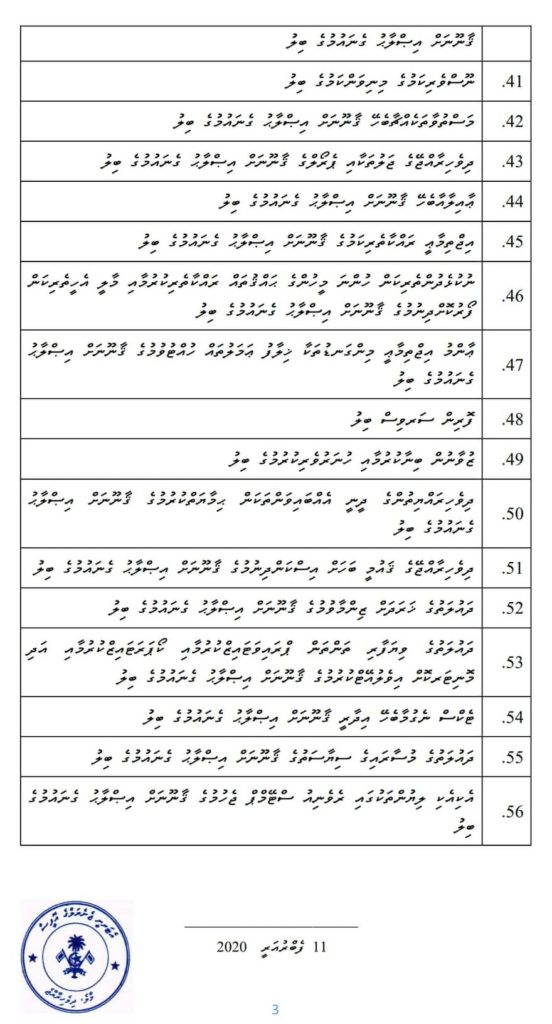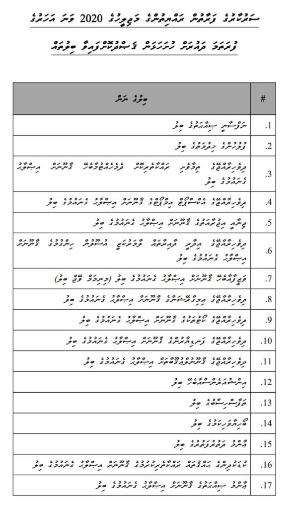 ސަރުކާރުގެ ފަރާތުން ރައްޔިތުންގެ މަޖިލީހުގެ 2020 ވަނަ އަހަރުގެ ފުރަތަމަ ދައުރަށް ހުށަހަޅަން ޤަޞްދުކޮށްފައިވާ ބިލުތަކުގެ ލިސްޓު ރައްޔިތުންގެ މަޖިލީހަށް ހުށަހަޅައިފިއެވެ.