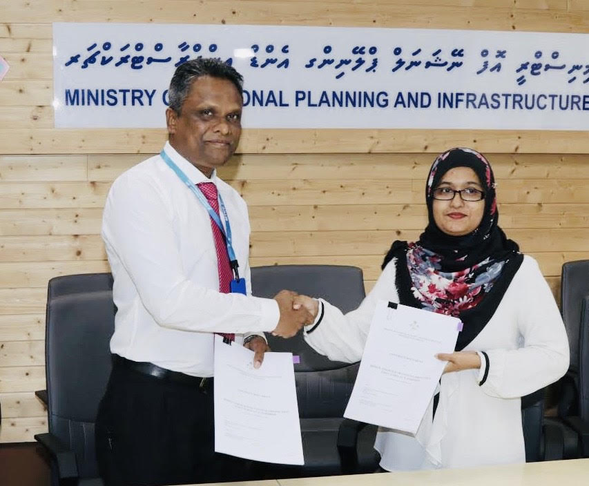 މިއަދު ޕްލޭނިން އެންޑް އިންފްރާސްޓްރަކްޗާ މިނިސްޓްރީގައި ބޭއްވި ރަސްމިއްޔާތުގައި މަސައްކަތުގެ އެއްބަސްވުމުގައި މިނިސްޓްރީގެ ފަރާތުން ސޮއިކުރެއްވީ ޑިރެކްޓާ ޖެނެރަލް ފާތުމަތު ޝާނާ ފާރޫގެވެ. އެމްޓީސީސީގެ ފަރާތުން ސޮއިކުރެއްވީ ކުންފުނީގެ ސީއީއޯ އާދަމް އާޒިމްއެވެ.