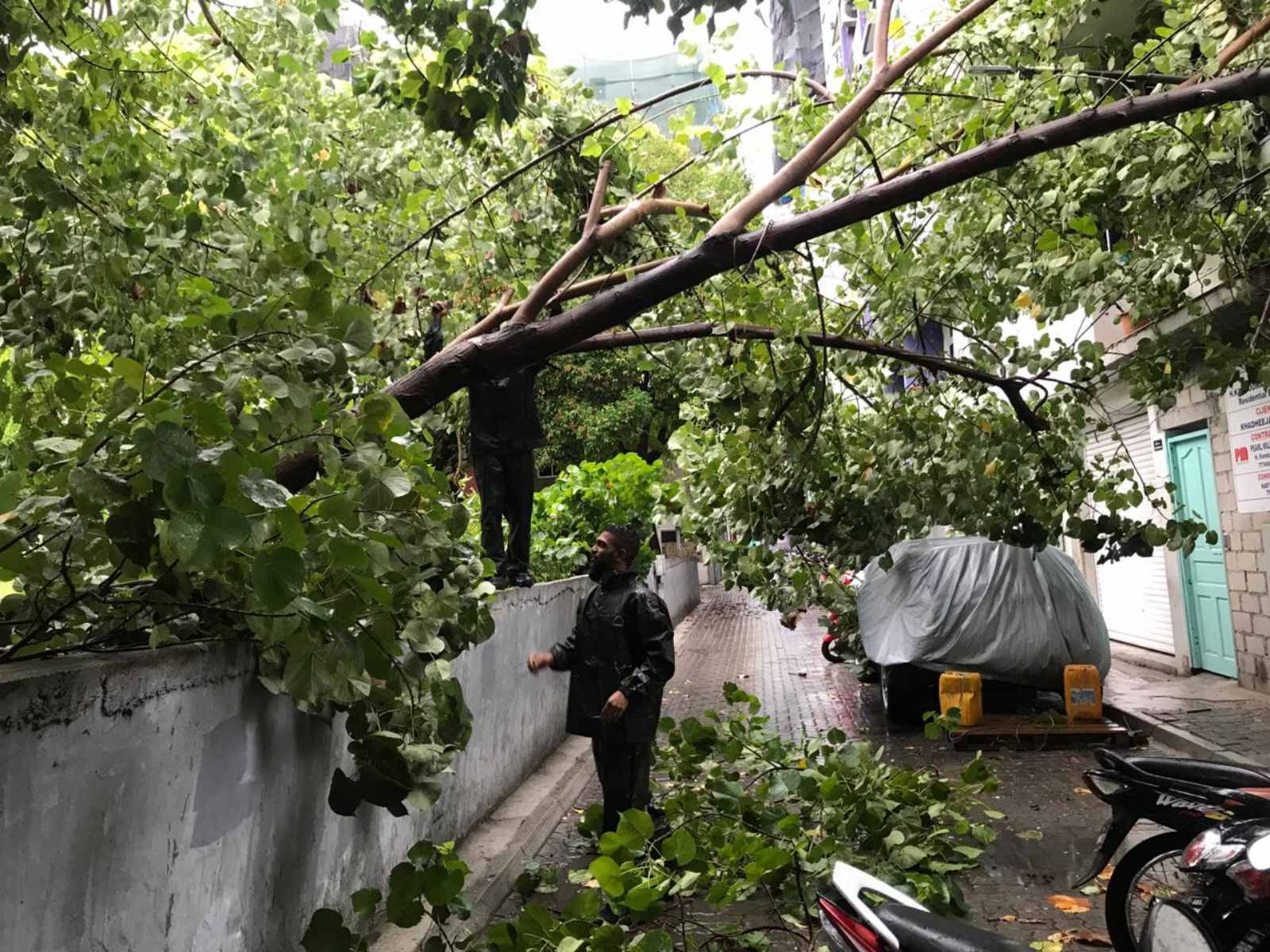 މިއަދު މާލޭ ސިޓީއަށް ކުރި ވިއްސާރައިގައި ފުރާޅުތަކެއް އެއްލާލުމުގެ އިތުރުން ބައެއް ސަރަހައްދުތަކުގައި ހުރި ގަސްތައް ވެއްޓިފައިވާ ކަމަށާއި، އެ ގަސްތައް ނެގުމުގެ މަސައްކަތް އެއްއެންޑީއެފް ފަޔަރ އެންޑް ރެސްކިއުގެ ސިފައިން ކުރަމުން ގެންދާ ކަމަށްވެސް އެ ސަރަވިސް އިން ވިދާޅުވިއެވެ.