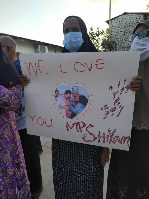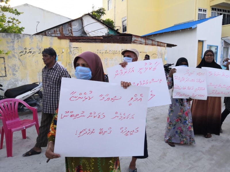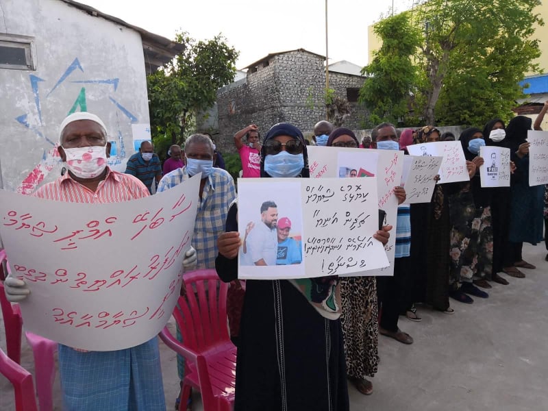 ރައްޔިތުންގެ މަޖިލީސް ތެރޭގައި ނައިފަރު ދާއިރާގެ މެންބަރު އަޙްމަދު ޝިޔާމްއަށް ކުރި އަނިޔާ ކުއްވެރިކޮށް ނައިފަރުގައި މުޒާހަރާ ކުރަމުން އެބަދެއެވެ.