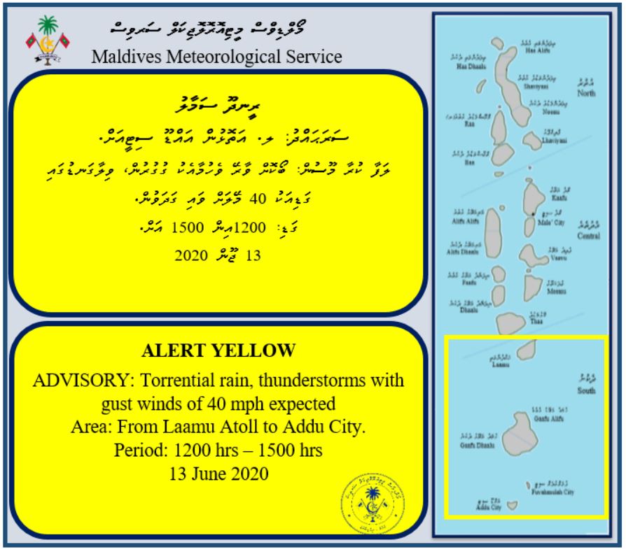 މި ދުވަސް ވަރަކީ ރާއްޖެއަށް ވިއްސާރަކޮށް މޫސުން ގޯސް ދުވަސްވަރެކެވެ. އެހެން ކަމުން މެޓް އޮފީހުން އަންނަނީ އެކި ސަރަހައްދުތަކަށް އެލާޓް ނެރެމުންނެވެ.