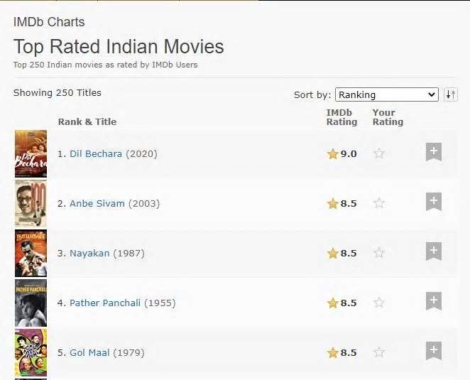 މުކޭޝް ޗަބްރާ ޑައިރެކްޓްކޮށްފައިވާ މި ފިލްމަކީ އައިއެމްޑީބީގައި އެންމެ މައްޗަށް ރޭޓް ކުރެވުނު ހިންދީ ފިލްމުގެ ރެކޯޑް މިހާރު އޮތް ފިލްމަށްވެފައިވާއިރު، އެ ފިލްމު ރިލީޒްކުރިތާ 24 ގަޑިއިރު ނުވަނީސް ވަނީ 75 މިލިއަން ވިއުސްވެސް ވަނީ ހޯދައިފައެވެ.