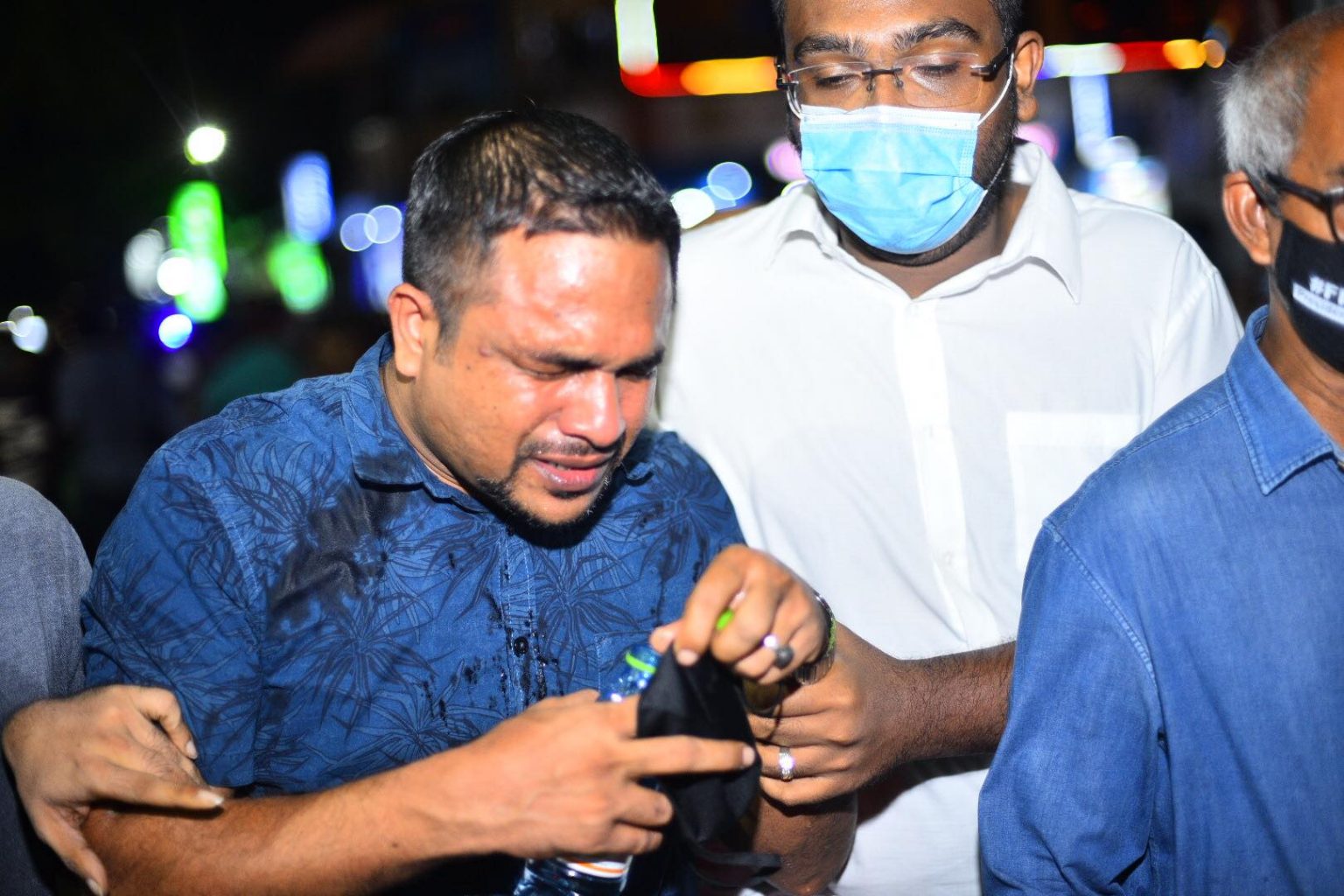 އިދިކޮޅު ފަރާތްތަކުން ކުރަމުންދާ މުޒާހަރާގެ ބައިވެރިންގެ ތެރެއަށް ފުލުހުން ޕެޕަރސުޕްރޭ ޖަހައިފި އެވެ.