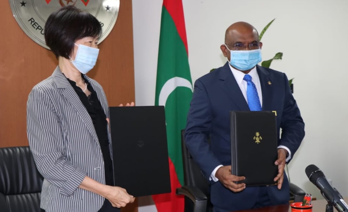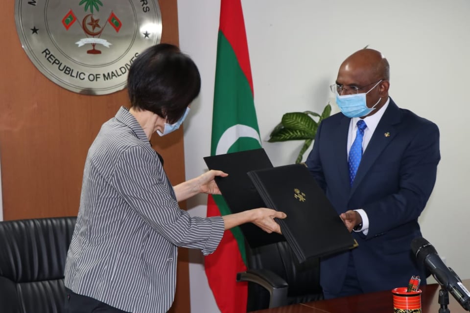 ފޮރިން މިނިސްޓްރީގައި ބޭއްވި ރަސްމިއްޔާތެއްގައި މިކަމާ ގުޅޭ އެއްބަސްވުމުގައި ސޮއިކުރެއްވީ ރާއްޖޭގެ ފަރާތުން ފޮރިން މިނިސްޓަރ އަބްދުﷲ ޝާހިދެވެ. އަދި ޖަޕާނުގެ ފަރާތުން ސޮއިކުރެއްވީ ޖަޕާނުން ރާއްޖެއަށް ކަނޑައަޅާފައި ހުންނަވާ ސަފީރު ކެއިކޯ ޔަނާއީ އެވެ.