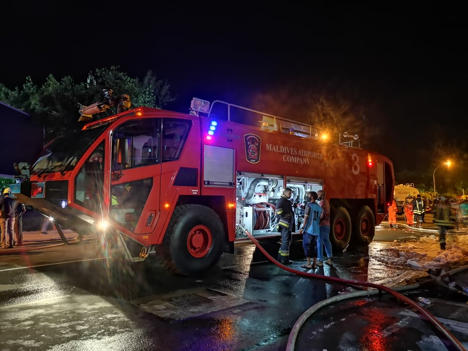 އަލިފާން ނިއްވުމަށް އެމްއެންޑީއެފް ފަޔާ ޓީމު ހަރަކާތްތެރިވެފައި ވާއިރު ގިނަ އަދަދެއްގެ ފަޔާ ވެހިކަލްތައް އެ ސަރަހައްދުގައި ހަރަކާތްތެރިވެފައި ވެއެވެ.