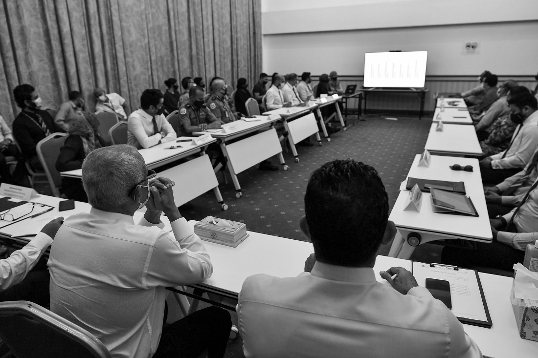 މި ޒިޔާރަތުގައި އެޗް.އީ.އޯ.ސީ ގައި މިއަދު މެންދުރުކުރީގައި ބޭއްވެވި ހެލްތް އިމަރޖެންސީ ކޯޑިނޭޝަން ކޮމިޓީގެ ބައްދަލުވުމުގައި ރައީސުލްޖުމްހޫރިއްޔާ ބައިވެރިވެ ވަޑައިގެންނެވިއެވެ. މިއީ، ރައީސުލްޖުމްހޫރިއްޔާގެ ނައިބު ފައިޞަލް ނަސީމް ރިޔާސަތު ބަލަހައްޓަވާ ބައްދަލުކުރެއްވުމެކެވެ.