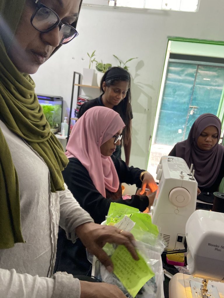 "އަޅުގަނޑާއި އަޅުގަނޑުގެ ތިން ދައްތައެއް ވެގެން މާސްކު ހަދާ މިވިޔަފާރި ފުޅާ ކުރުމުގައި މިއުޅެނީ. އަޅުގަނޑަށް ބޮޑަށް އިންނަނީ މާކެޓް ކުރުން. އަޅުގަނޑުމެން ނޯމަލް މާސްކާއި ހިޖާބް މާސްކު ވެސް ހަދަން. ހިޖާބް މާސްކު އަދި ރާއްޖޭގައި އަލަށް ކަންނޭނގެ މިތައާރަފްވީ" އައިޝާ ބުންޏެވެ.