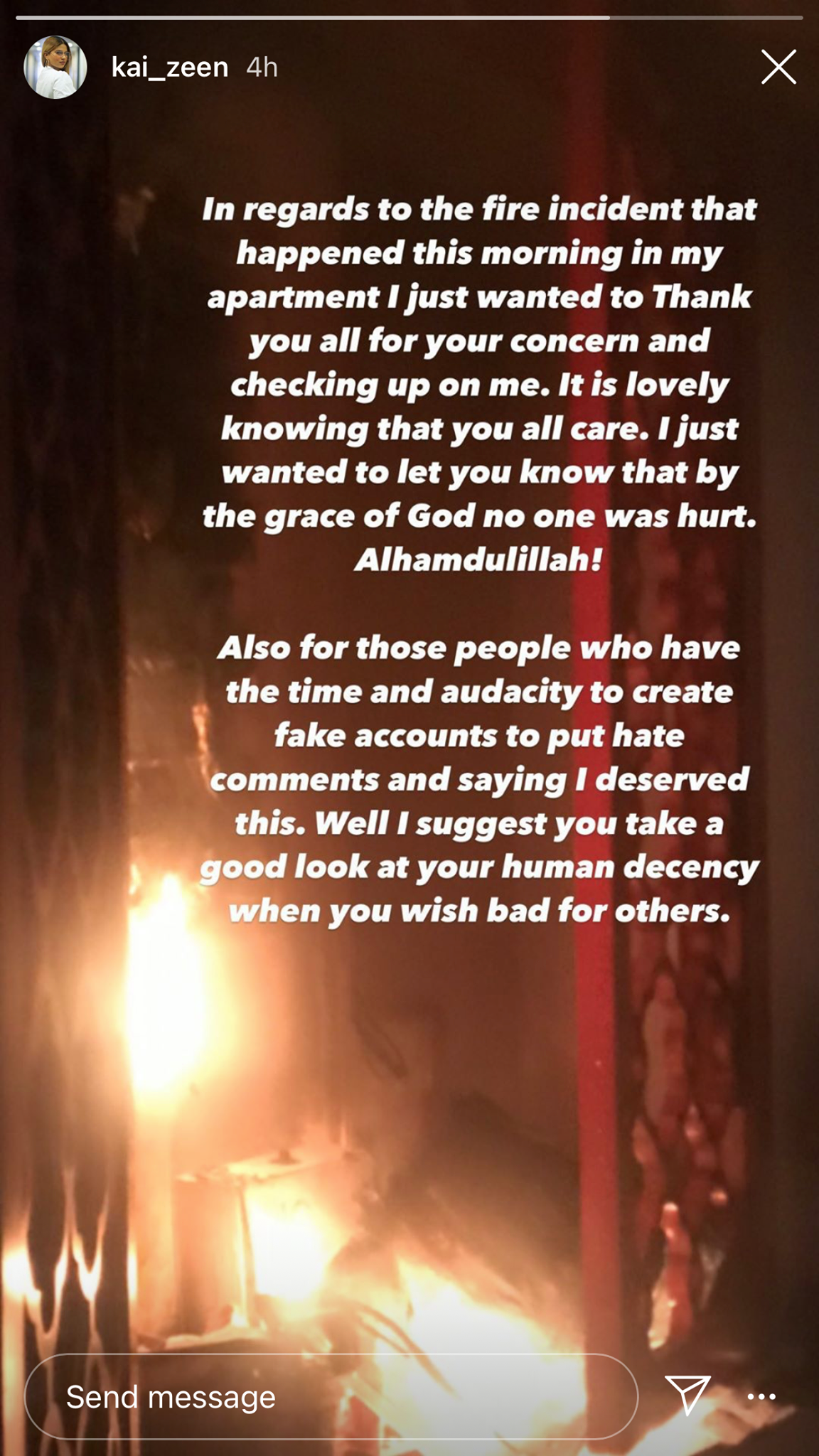 ކައިޒީން މިއަދު އޭނަގެ އިންސްޓަގްރަމް ސްޓޯރީގައި އަލިފާނުގެ ހާދިސާއާއި ގުޅޭގޮތުން ހިއްސާކޮށްފައިވާ ޕޯސްޓެއްގައި ވަނީ، އޭނައާއިމެދު ކަންބޮޑުވެ ހާލުބެލި އެންމެންނަށް ޝުކުުރުއަދާކޮށްފައެވެ. އަދި އޭނަގެ ހާލު ރަނގަޅުކަން އަންގާ ކައިޒީން ބުނީ، އޭނައާމެދު އޯގާތެރިވާ ބަޔަކު ހުރިކަން އެނގުމަކީ ވަރަށް އުފާވާކަމެއްކަމަށެވެ.