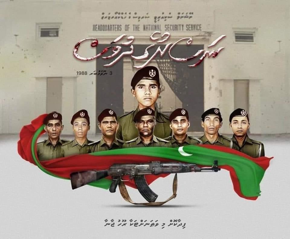 އެދުވަހު 18 ވަރަކަށް ގަޑިއިރުވަންދެން ރާއްޖޭގެ ވެރިރަށް މާލޭގެ މައްޗަށް އަތްގަދަކޮށްލައިގެން ތިބީ ޤައުމުގެ އަދާވާތްތެރި ދުޝްމަނުންނެވެ. އެބައިމީހުން ހަނގުރާމަ ކުރަމުން ގެންދިޔައީ މުޅި ޤައުމު އެބައިމީހުންގެ އަތްމައްޗަށް ގެންދިއުމަށެވެ. އެދުވަހުގެ ޙަމަލާގައި 19 ދިވެހި ދަރީން ޝަހީދުވިއެވެ. އަދި ހަމައެހެންމެ، އެދުވަހު ވަރަށް ގިނަ އިރުތަކެއް ވަންދެން ދިވެހިރާއްޖޭގެ ހިތްވަރުގަދަ ސިފައިން ބާޣީންނާއި ހަގުރާމަކުރަމުން ގެންދިޔައެވެ. ދުޝްމިނުންގެ ބަޑީގެ ވަޒަންތަކުން ދިވެހި ސިފައިންގެ 8 މީހަކު ޝަހީދުވެ އެތައްބަޔަކު ޒަޚަމްވެފައިވެއެވެ. ނަމަވެސް ދިވެހި ސިފައިން ދެމިތިބީ އެބައިމީހުންގެ ޤައުމީ ވާޖިބު އަދާކުރުންމަތީ ތެދުވެރިކަމާއި އަމާނާތްތެރިކަމާއެކުގައެވެ. އެދުވަހު ޝަހީދުވި ހިތްވަރުގަދަ ދިވެހި އަބްޠާލުންނަށް މާތްﷲ ހެޔޮރަޙްމަތްލައްވާށިއެވެ! ދިވެހި ޤައުމުގެ މިނިވަންކަމާއި ސިޔާދަތު އަބަދައްޓަކައި ރައްކާތެރި ކޮށްދެއްވާށިއެވެ! އާމީން.
